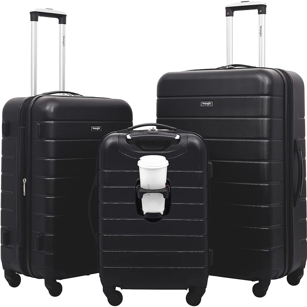 Wrangler 3 Piece Hardside Smart Luggage Set w/Cup Holder and USB Port Open Box