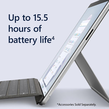 Surface Pro 9 delivers blazing-fast Pro performance with 12th Gen Intel® Core™ processors on select configurations and up to 15.5 hours of battery life.