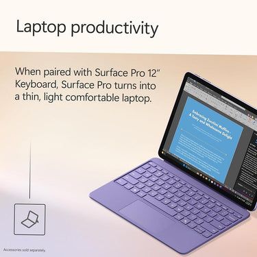 • The Power of a Laptop; the Flexibility of a Tablet - Surface Pro 12" is a 2-in-1 device that adapts to you Use it as a tablet for on-the-go tasks; prop it up with the built-in kickstand; or attach the Surface Pro Keyboard (sold separately) to turn it into a full laptop