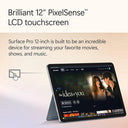 12" PixelSense Touchscreen: Enhanced performance for streaming; Surface Pro 12-inch is built to be an incredible device for your favorite movies; shows; and music.