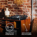 - Plays 33-1/3 and 45 RPM Records
