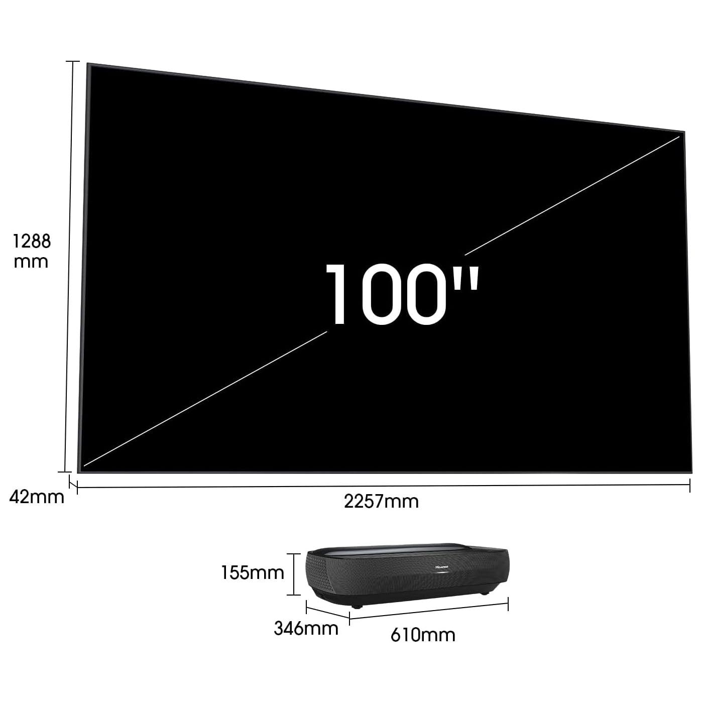 - Hisense 100L8G-DLT100C 4K UHD Laser TV, TriChroma Laser UST Ultra Short Throw Projector with 100" ALR Screen