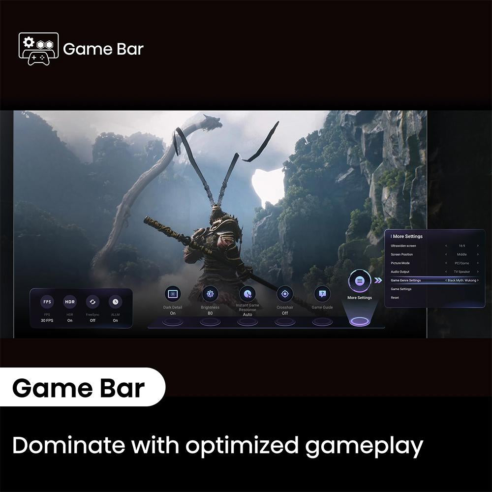 Serious gamers wanted! With a winning combination of technology, 144Hz Game Mode Pro is the one to beat. A variable refresh rate from 48Hz to 144Hz ensures that your console and PC gaming will meet any opponent head on. AMD FreeSync Premium Pro and Auto Low Latency Mode virtually eliminate screen tearing and controller input lag, while Game Bar lets you easily customize your gaming experience.