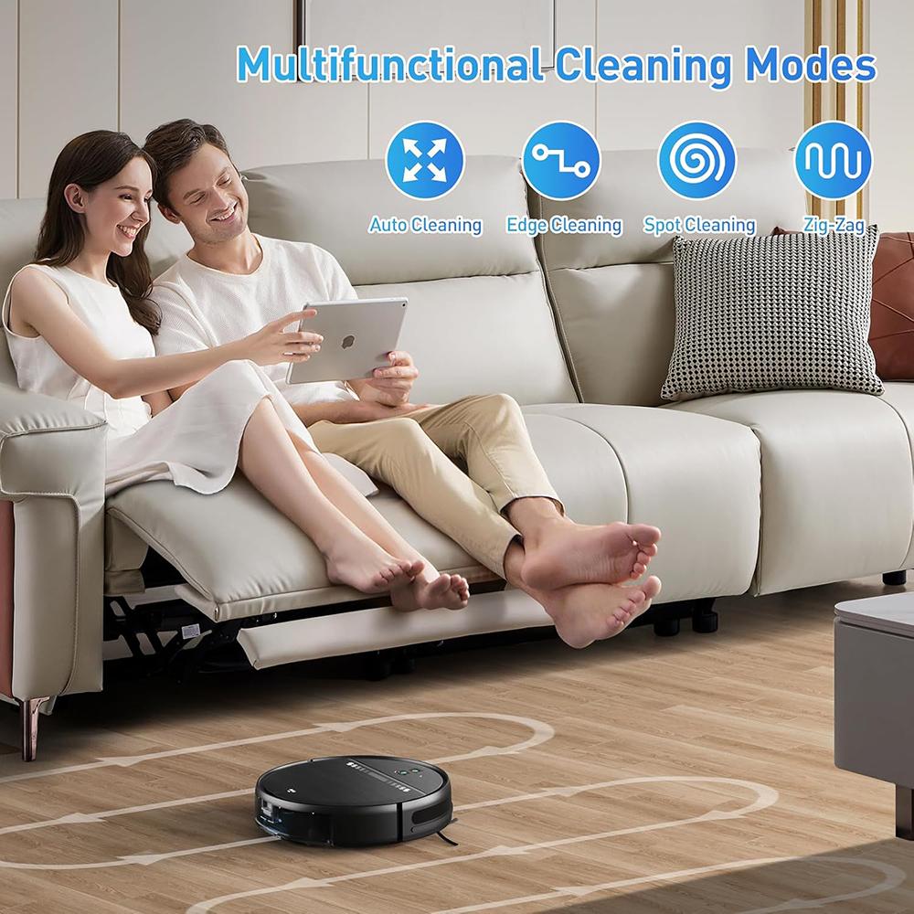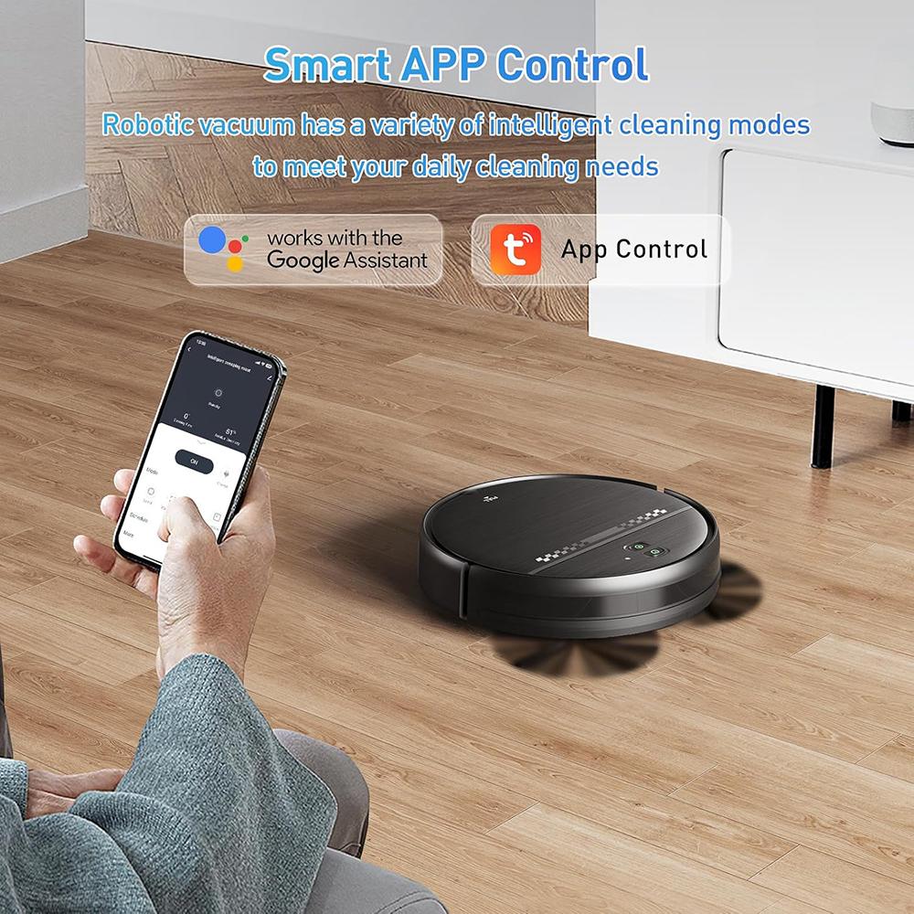 Seamlessly control your smart vacuum and mop robot via the Tuya Smart App (2.4GHz WiFi required) or voice commands through Google Assistant. Schedule cleanings, switch modes (Auto/Spot/Edge/Zig-zag), and monitor progress remotely. Its zig-zag path navigation boosts coverage by 30%, making it the best robotic vacuum cleaner for large homes up to 1,290 sqft.