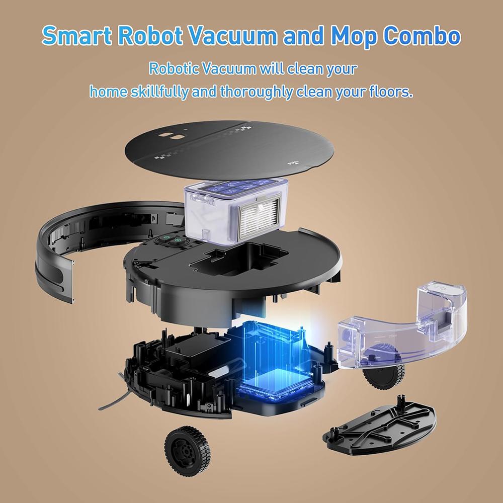 - Robot Vacuum and Mop Combo, 2-in-1 Mopping Robot Vacuum Cleaner with 2300Pa Suction, 2.87'' Slim Design, Wi-Fi/App/Voice Control, 3D Obstacle Avoidance &Self-Charging for Hard Floors, Carpets, Pet Hair