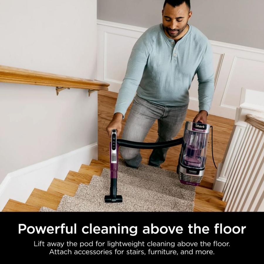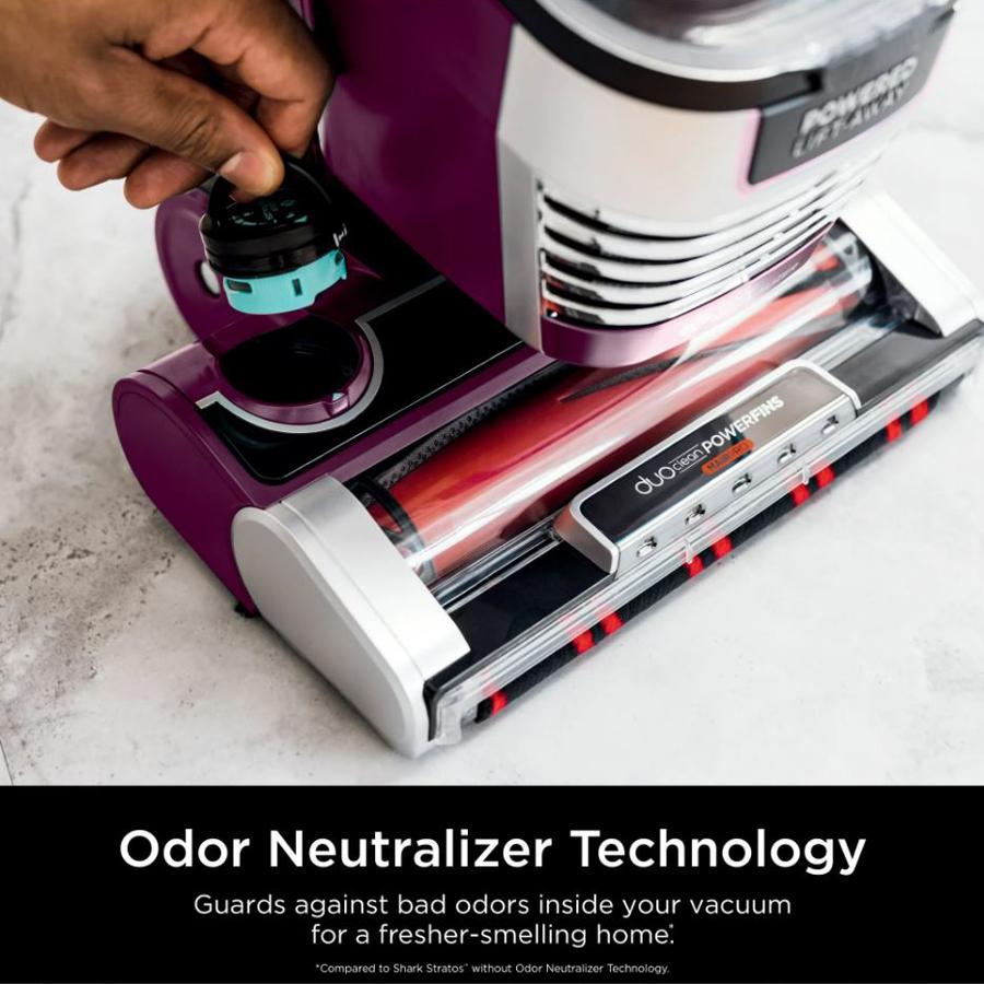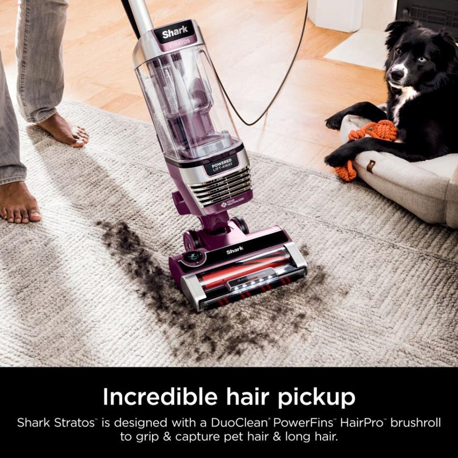 Meet the Shark Stratos Powered Lift-Away vacuum, where our most advanced technologies combine with pure cleaning power. The DuoClean PowerFins HairPro nozzle, a self-cleaning brushroll, and Odor Neutralizer Technology are just the start.