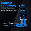 - Self-emptying into bagless base