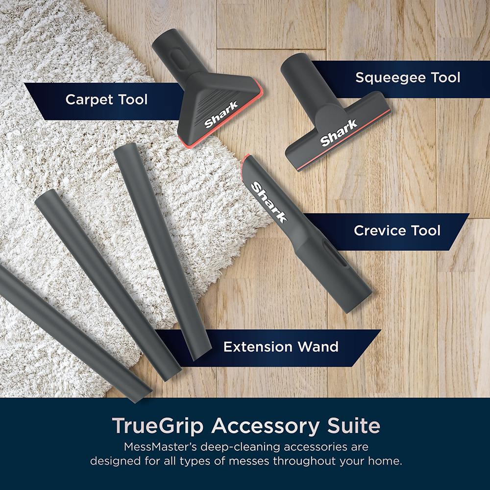 MessMaster Vacuum, Squeegee Tool, Carpet Tool, Crevice Tool, & Extension Wand
