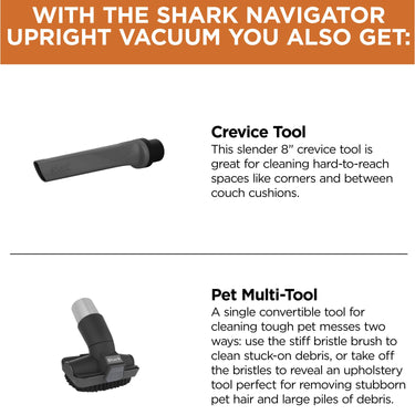 Pet Multi-Tool included for tackling stubborn pet hair on upholstery and a crevice tool for other above-floor areas