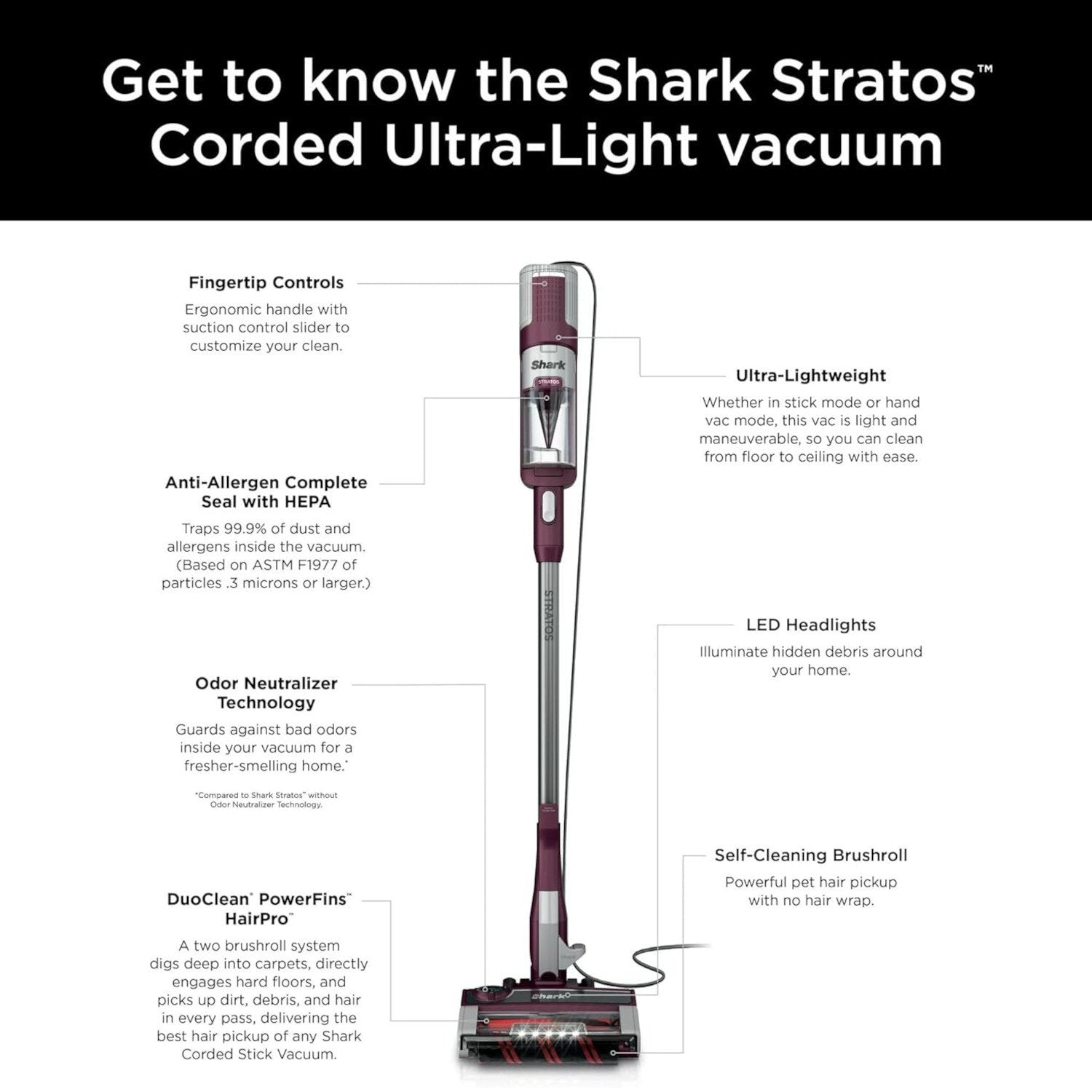 - Shark Stratos HZ3000 Ultralight Corded Stick Vacuum - Red Plum