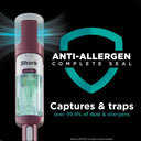 Works with the HEPA filter to trap 99.9% of dust and allergens inside the vacuum cleaner. (Based on ASTM F1977 of particles .3 microns or larger.)