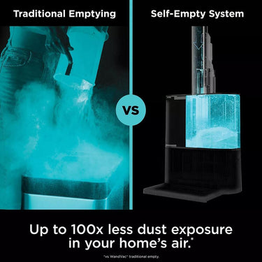 The Shark® Wandvac® Self-Empty System is the powerful, lightweight cordless vacuum that empties itself so you can ditch the dirty work. It features HyperVelocity® suction power and a PowerFins® brushroll to tackle floors & carpets with no hair wrap. And when you’re done cleaning, Wandvac® automatically empties into a HEPA-sealed base for up to 100x less dust in your home vs. Wandvac® traditional emptying.