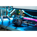 Volume control and mute switch are conveniently located on the left earcup for easy control of the incoming sound and the microphone. The gaming headphones come with two detachable cables: a 3.0 m (9.8’) cable with 3.5 mm (1/8”) mic and headphone plugs for connecting to computers, and a 1.2 m (3.9’) cable with a 3.5 mm (1/8”) TRRS plug for connecting to PS5, Xbox Series X, and other gaming consoles.
