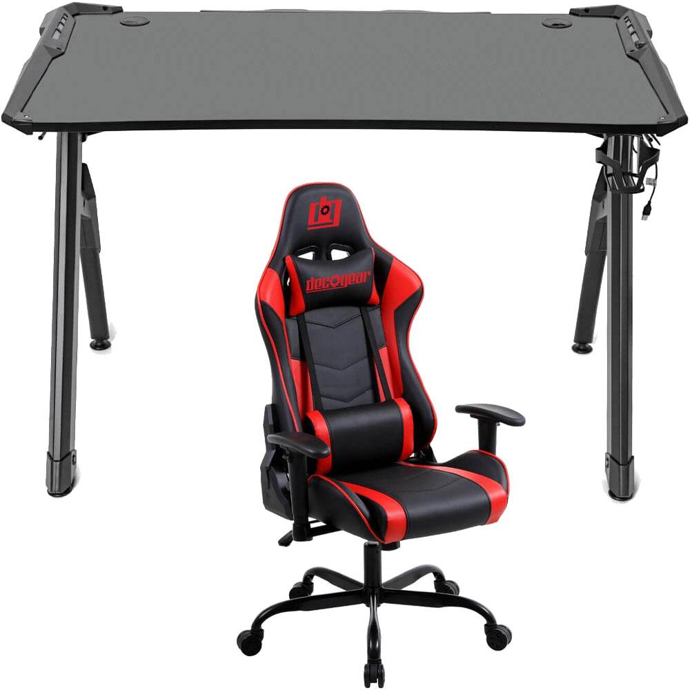 Deco Gear 47" LED Gaming Desk, Carbon Fiber Surface with Gaming Chair (Red) Bundle
