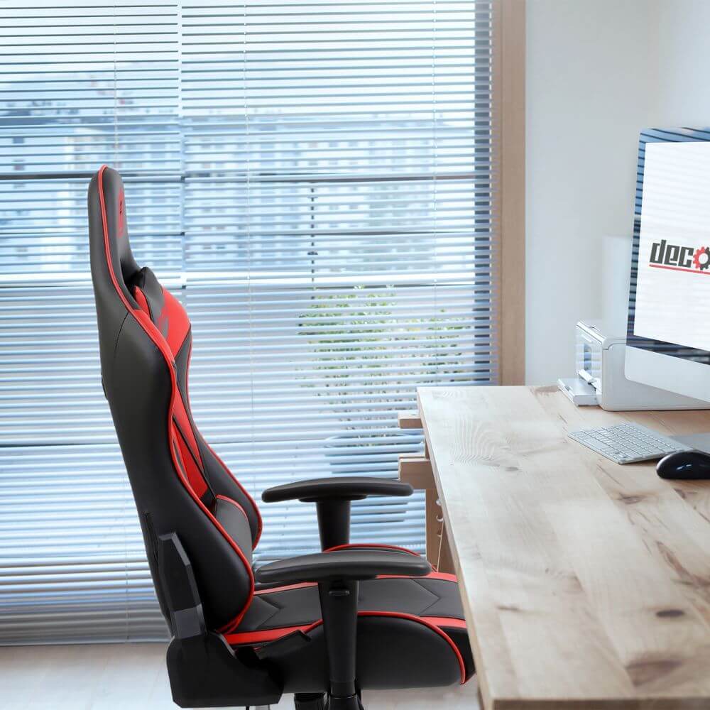 Deco Gear Ergonomic Foam Gaming Chair with Adjustable Head and Lumbar Support, Red