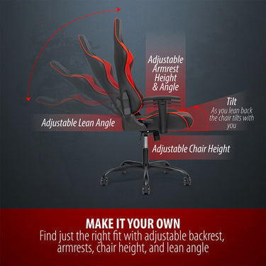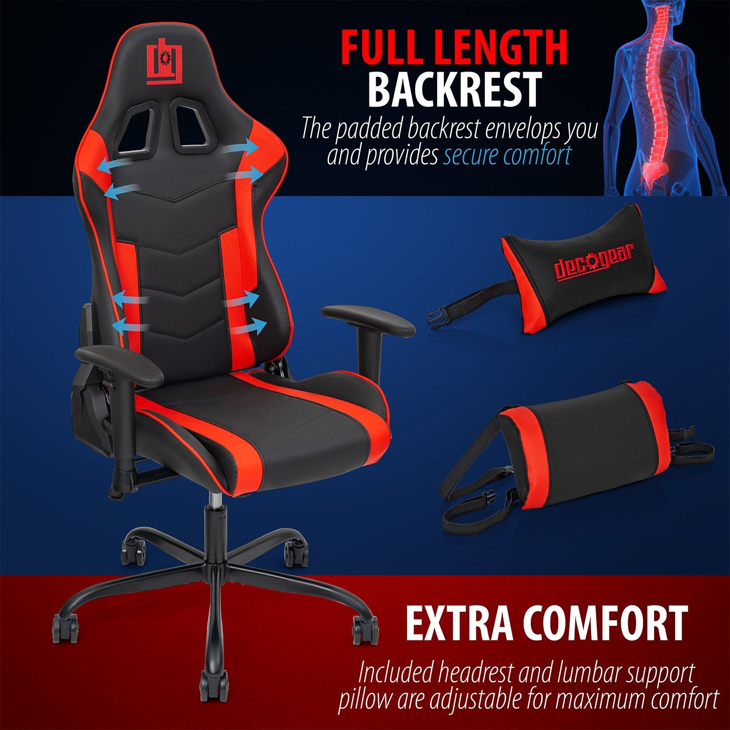 Deco Gear Ergonomic Foam Gaming Chair with Adjustable Head and Lumbar Support, Red