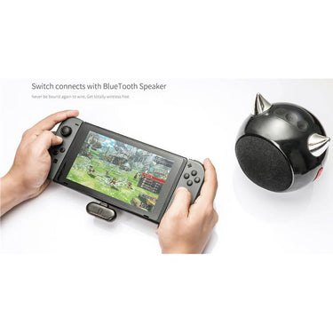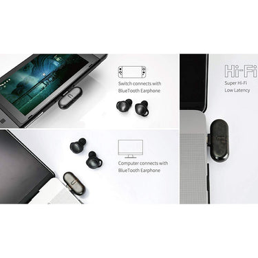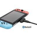 The Bluetooth transmitter is always on when plugged into the Switch's USB-C port. Alternatively, an adapter can also be used to plug it into the Switch dock's USB-A port. Bluetooth dongle draws less than 1% of the power from the Switch's own battery. It also uses the Switch's built-in driver, which means no bricking problem.