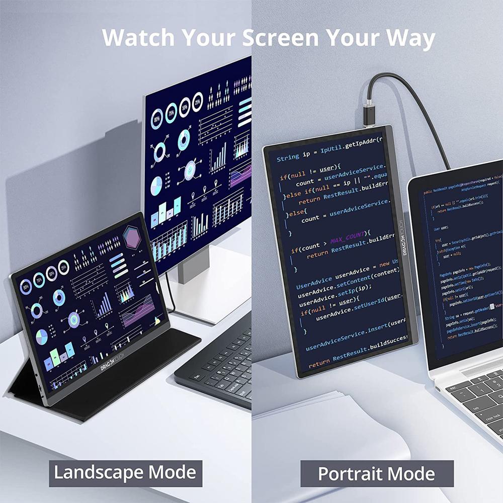 Dragon Touch portable computer monitor with 0.34-inch thickness and 1.7lb weight is extremely light and fits easily into a backpack or suitcase. The portable external monitor is ideal for gamers, students or engineers.