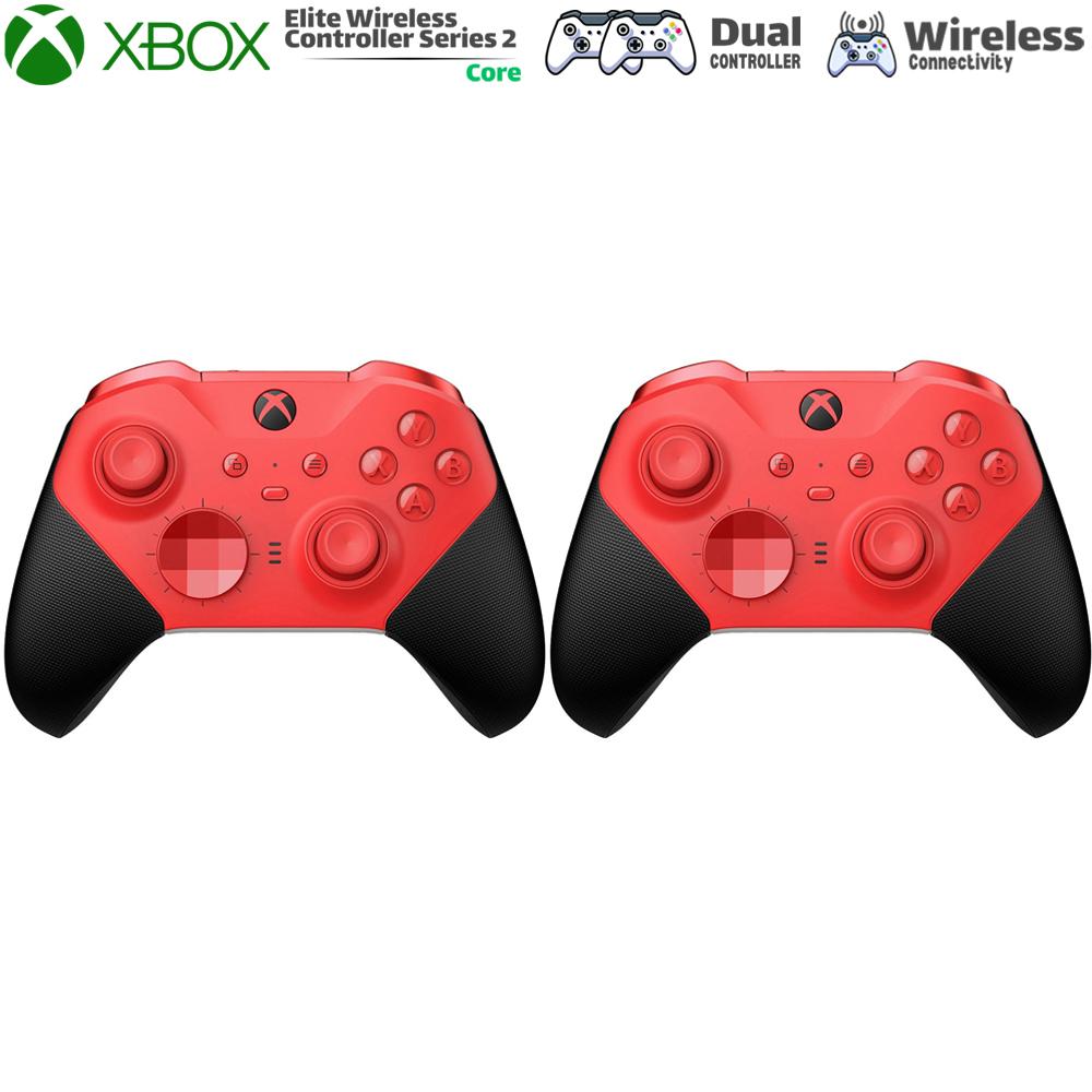 Experience the Xbox Elite Wireless Controller Series 2 - Core in red, featuring adjustable-tension thumbsticks, wrap-around rubberized grip, and shorter hair trigger locks.