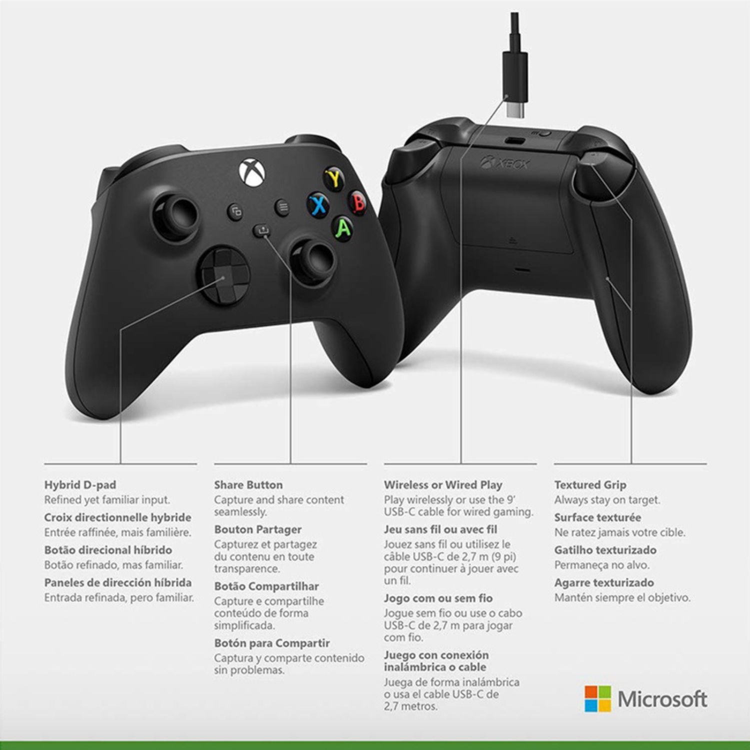 Experience the modernized design of the Xbox Wireless Controller, featuring sculpted surfaces and refined geometry for enhanced comfort during gameplay. Play wirelessly or use the included 9 Usb-c cable for a wired gaming experience. Stay on target with a Hybrid d-pad and textured grip on the triggers, bumpers, and back case. Use the Xbox accessories App to remap buttons and create custom Controller profiles for your favorite games. Quickly pair and Switch between Xbox series x, Xbox One, Windows 10 PCs, Android. iOS support coming in the future. Plug in any supported headset with the 3.5mm audio jack.