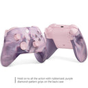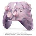 Be Bold. Be Unique. Defeat your opponents in style with this Dream Vapor Special Edition Xbox Wireless Controller in a dynamic pink and purple color swirl. It can be played on console, PC, and mobile devices. The controller features rubberized purple diamond-pattern grips on the back-case, a hybrid D-pad and textured grip on triggers, bumpers, and side caps, and a dedicated Share button for sharing content. It can be connected using the USB-C port for direct plug and play, and supports up to 40 hours of battery life. The controller can be paired with, played on, and switched between devices like Xbox Series X|S, Xbox One, Windows PCs, and Android and iOS phones and tablets. It also includes Xbox Wireless and Bluetooth technology for wireless gaming on supported consoles, Windows PCs, and Android and iOS phones and tablets. Battery life varies with headsets, additional accessories, usage, and other factors.