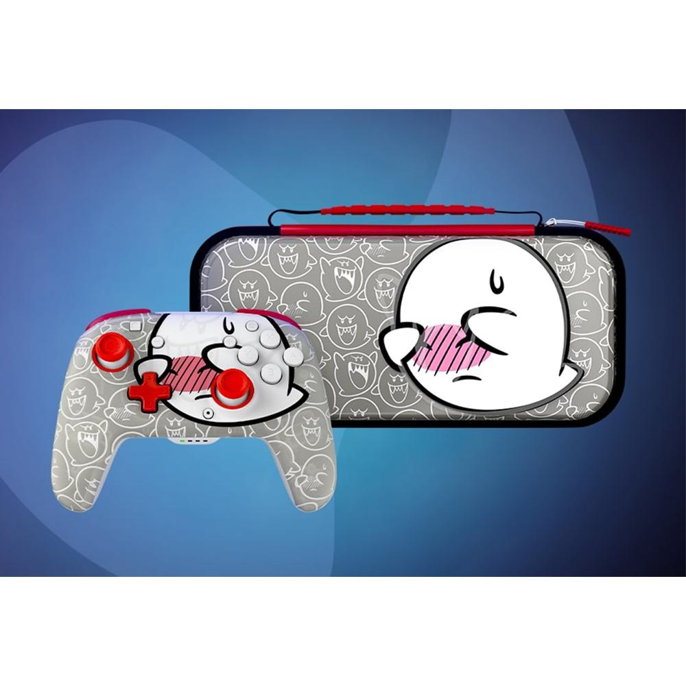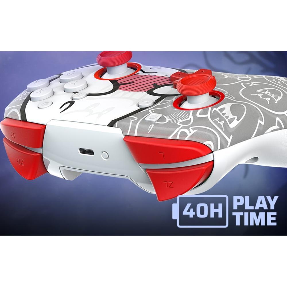 The Boo Hoo REMATCH GLOW Wireless Controller will power up your play with a unique design that glows in the dark after exposure to light. With its 40-hour battery life, play all day knowing it can keep up with even the longest gaming sessions. Immerse yourself into the game with built-in motion controls. Get comfy on the couch and stay connected with the 30-foot, low latency wireless range. Program other button functions to the dual back buttons for faster actions in-game and a customized gaming experience. Give your gaming a glow up with the officially licensed REMATCH GLOW Wireless Controller for Nintendo Switch.