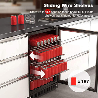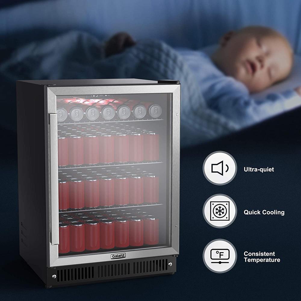 Galanz 172 cans built-in beverage cooler is perfect for all entertaining. Featuring 3 slide out shelves the cooler will hold up to 172 cans of your favorite beverage.