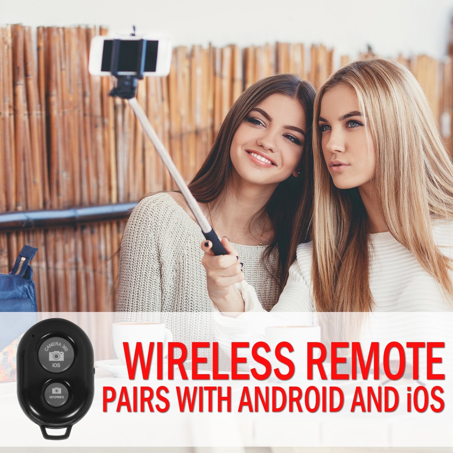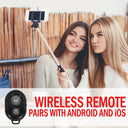 Included is a wireless remote shutter button that can pair with any Android (v6.0 or above) and iOS (v7.0 or above) device. Simply find the remote to pair with your phone and you're ready to snap remote pictures on command. Additionally, you get a small tripod stand that screws into the base of the handle, giving you a fast and simple to use tabletop camera.