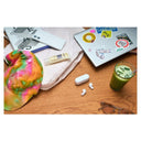 Small and cylindrical, the charging case is made to fit in your pocket or your bag. Its luxurious, tactile pattern is also pleasing to look at when it’s not packed away.