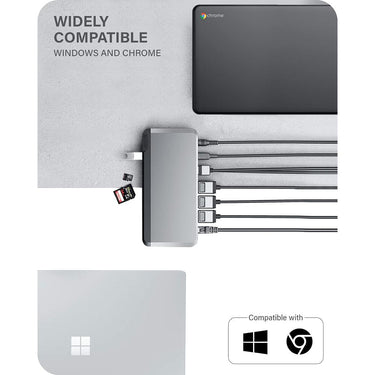 The MX3 makes multi-display set ups simple. Featuring DP Alt Mode technology; it connects directly with up to three displays and multiple other accessories. No need to install drivers or software. Plug in and go.
