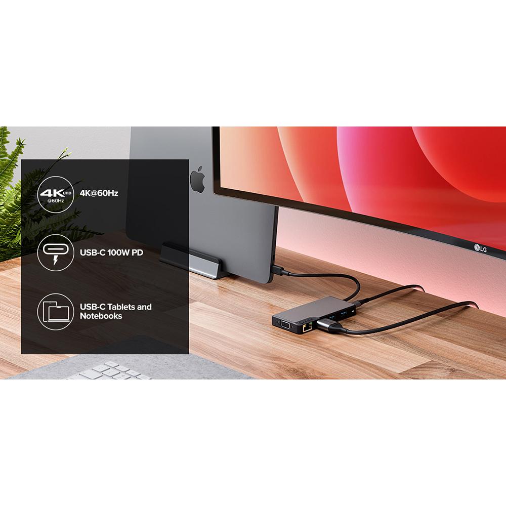 - Six ports2 x USB-A (5G); 1 x USB-C (5G & 100W PD); HDMI (4K@60Hz); VGA and RJ45 Gigabit Ethernet