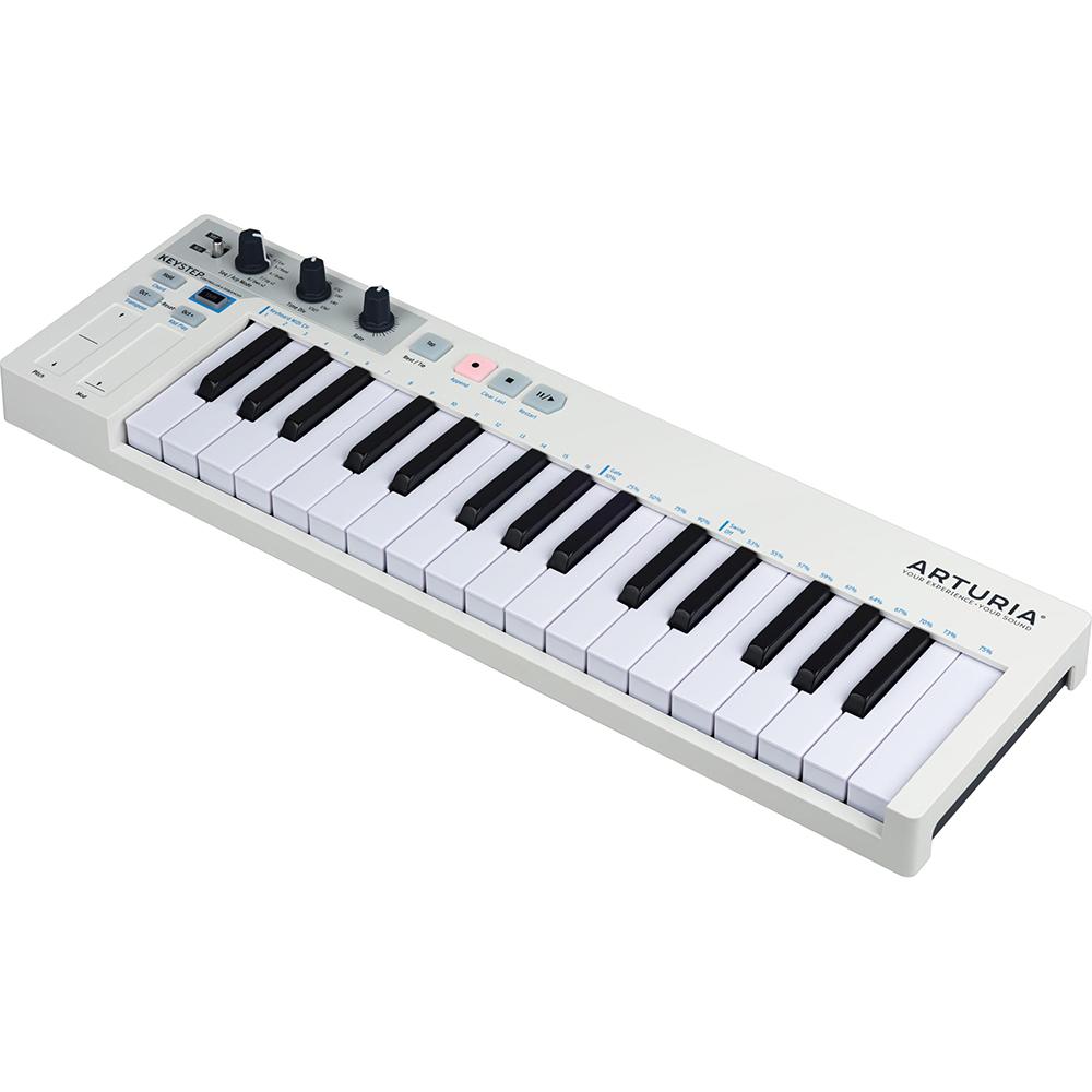 Slimkey Keybed: 32-note keyboard, designed by Arturia with velocity and aftertouch.