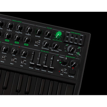 Oscillator and Modifiers: MicroBrute UFO's 100% analog VCO blends saw, pulse, and triangle waves, enhanced with unique built-in modifiers: Ultrasaw for huge width, Metalizer for complex harmonics, and a sub-oscillator that rattles the room.