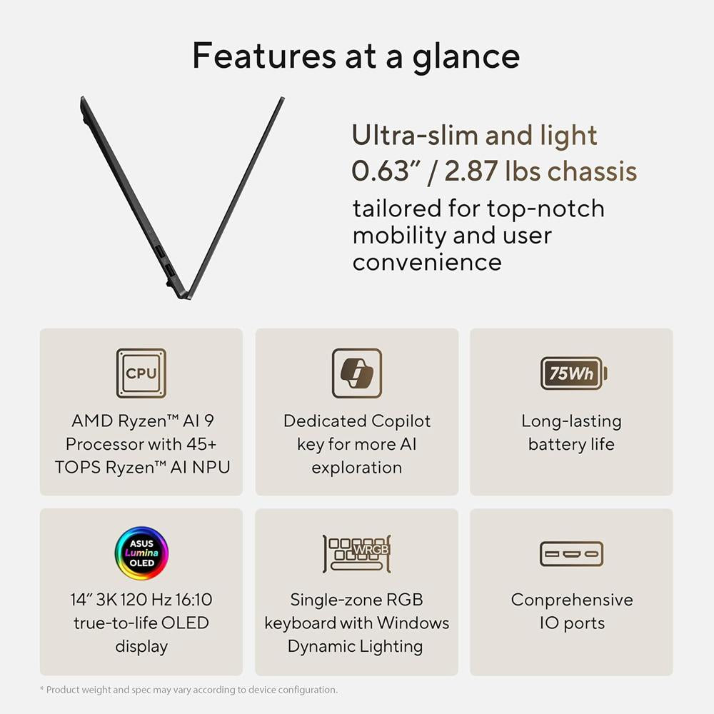 ASUS Vivobook S BLACK 14.0 WQXGA+(WQ+) non-Touch AI R9 365 24GB AMD UMA 512GB WIN11 HOME
