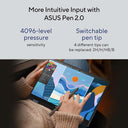 ASUS Pen 2.0 is an MPP 2.0-compliant stylus with 4096 pressure levels; ultra-low latency and fast response. It also features a 5-350 gram pen tip force; a handy multi-function shortcut button; and fast USB-C charging.