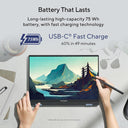 - More battery power - with a high-capacity 75 Wh battery; you can work or play all day with fewer visits to the power outlet. And when it does need a charge; the fast-charge technology tops it up to 60% capacity in as little as 49 minutes