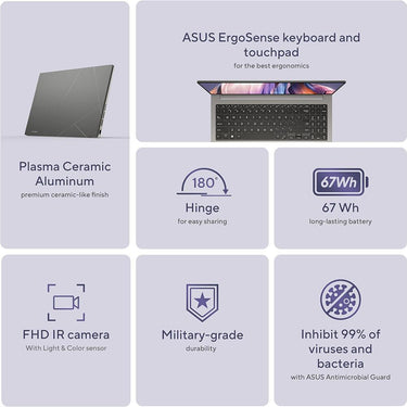 Zenbook 15 OLED laptops use the technique to transform the aluminum lid into a plasma ceramic aluminum. This results in increased wear resistance; corrosion Protection; thermal management; hardness; and lifespan.