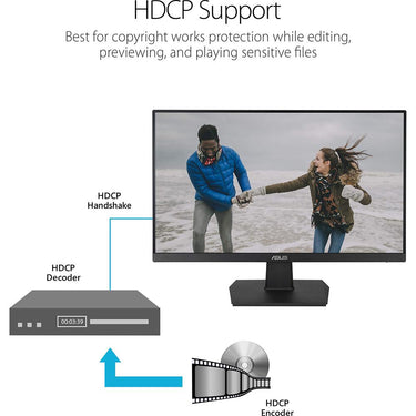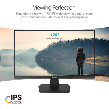 ASUS VA24EHE Eye Care Monitor features 23.8 inch IPS panel with Full HD (1920 x 1080) resolution; providing 178 degree wide viewing angle panel and vivid image quality. Up to 75Hz refresh rate with Adaptive-Sync/FreeSync technology to eliminate tracing and ensure crisp and clear video playback. In addition; it also features TÜV Rheinland-certified Flicker-free and Low Blue Light technologies to ensure a comfortable viewing experience.