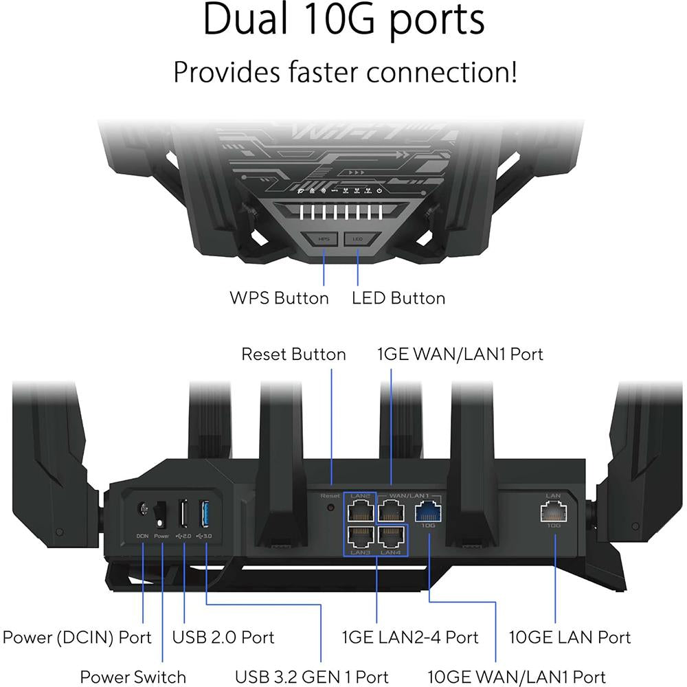 - ASUS RT-BE96U BE19000 802.11BE Tri-Band Performance WiFi 7 Extendable Router with 6GHz support, Dual 10G Port, 320Mhz, lifetime internet security , MLO, Multi-RU puncturing , AiMesh Support