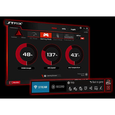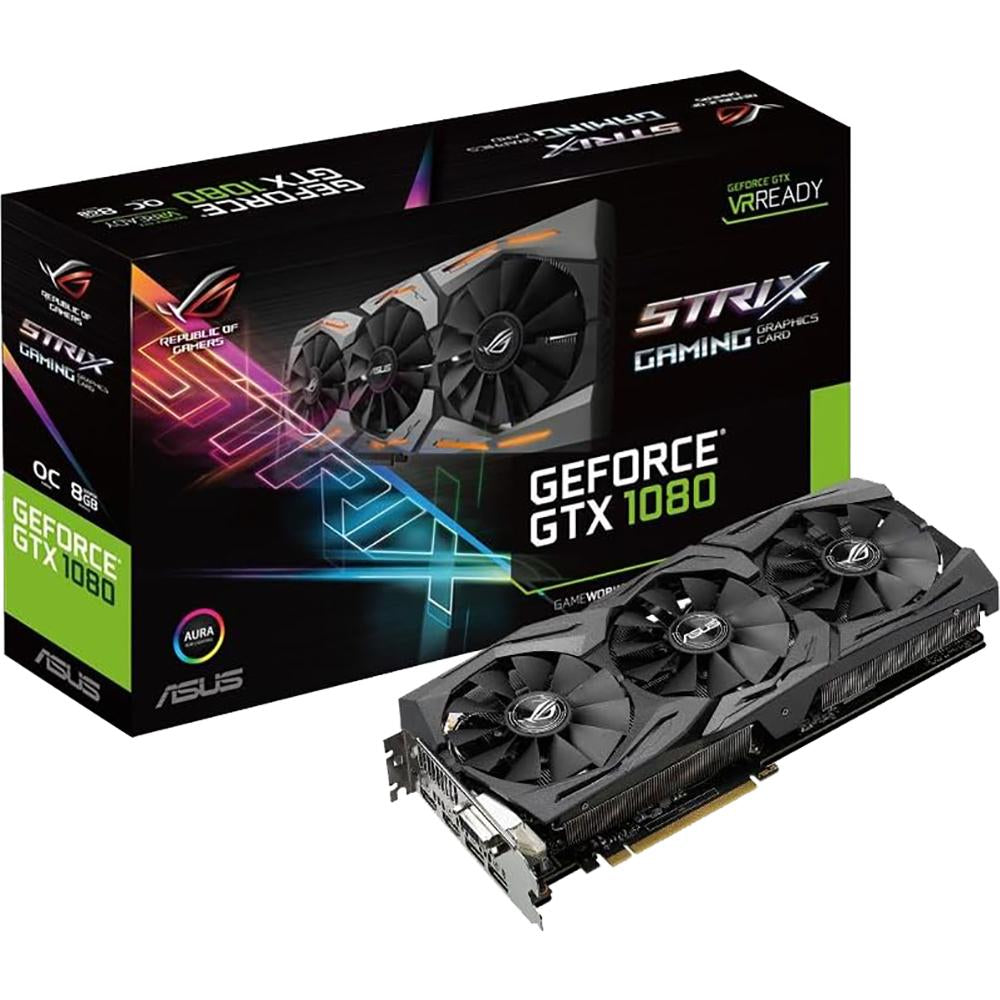ASUS GeForce GTX 1080 8GB ROG STRIX OC Edition, NVIDIA GeForce GTX 1080, PCI Express 3.0, 8GB GDDR5X. Powered by NVIDIA Pascal, ROG Strix GTX 1080 brings performance and customization to another level with 1936 MHz Boost enabled by Super Alloy Power II and Aura RGB Lighting on the shroud & backplate. DirectCU III cools efficiently and quietly, while new ASUS FanConnect provides dual 4-pin GPU-controlled PWM fan headers.