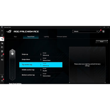 An innovative touch panel on the left side of the Falchion Ace lets you conveniently adjust volume; or create shortcuts for switching apps; or copying and pasting. It can also be programmed for use as a macro key for more intuitive controls for gaming.