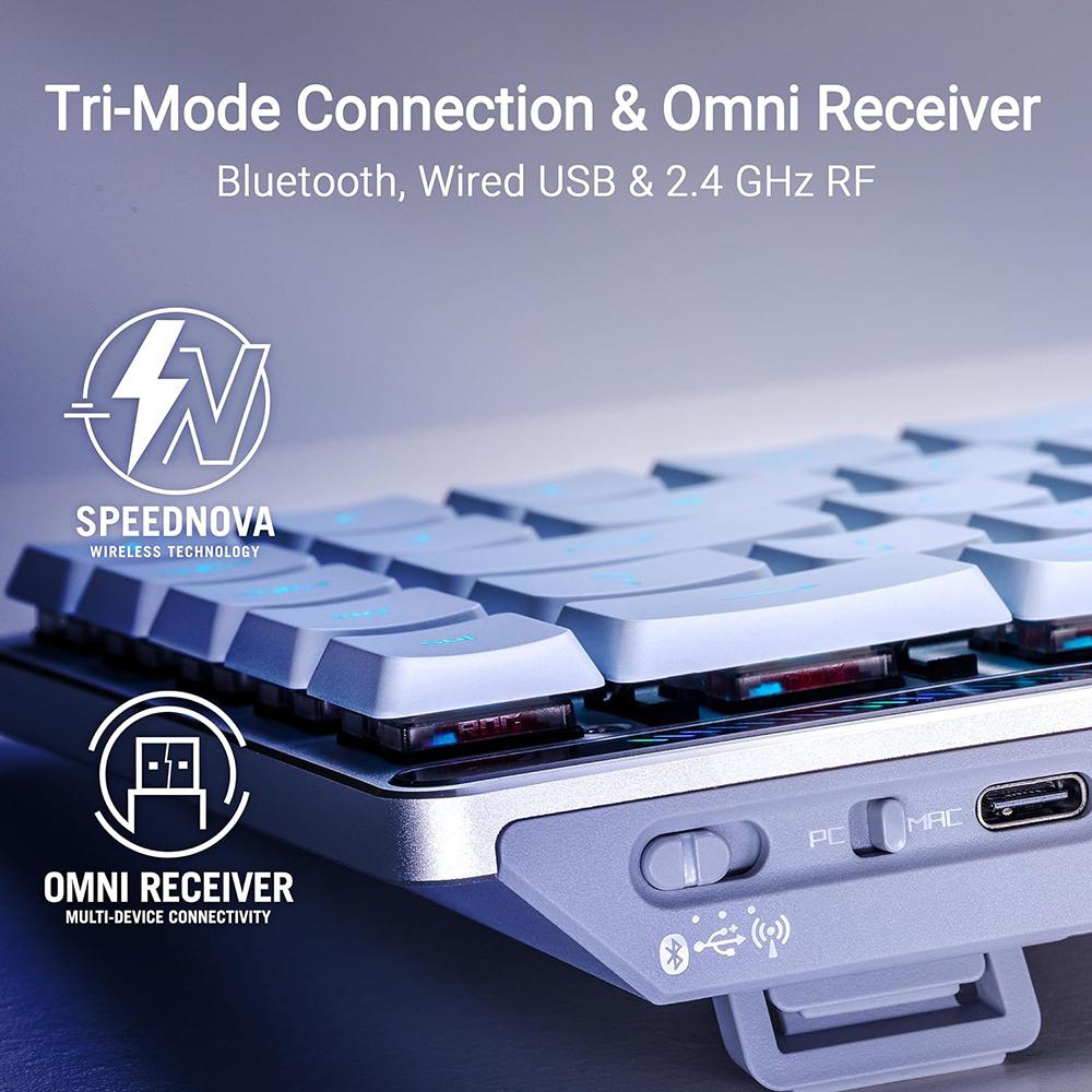 - Tri-mode connection - Connect via Bluetooth (up to three devices simultaneously); 2.4 GHz with ROG SpeedNova wireless technology; or wired USB