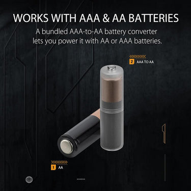 A bundled AAA-to-AA battery converter lets you power the TUF Gaming M4 Wireless with AA or AAA batteries. Pairing the smaller AAA battery with the converter results in a 10% weight reduction; which can lead to faster movements.