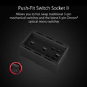 - Exclusive Push-Fit Switch Socket II design enables hot swap compatibility with mechanical switches and Omron Optical Micro