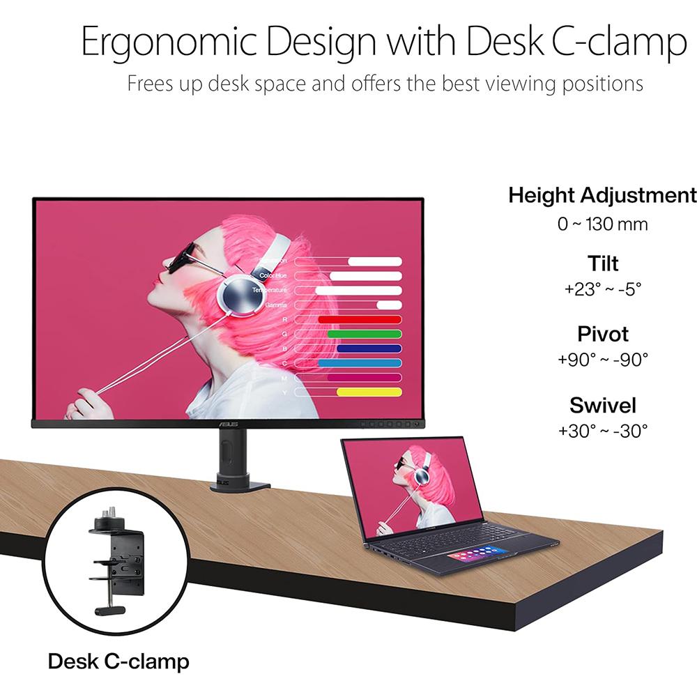ASUS ProArt Display 32 4K HDR Monitor (PA329CV) - UHD (3840 x 2160), IPS, 100% sRGB/Rec.709, ?E < 2, Calman Verified, USB-C Power Delivery, DisplayPort, HDMI, USB 3.1 Hub, C-clamp, Height Adjustable