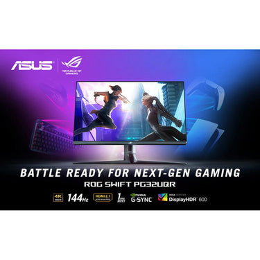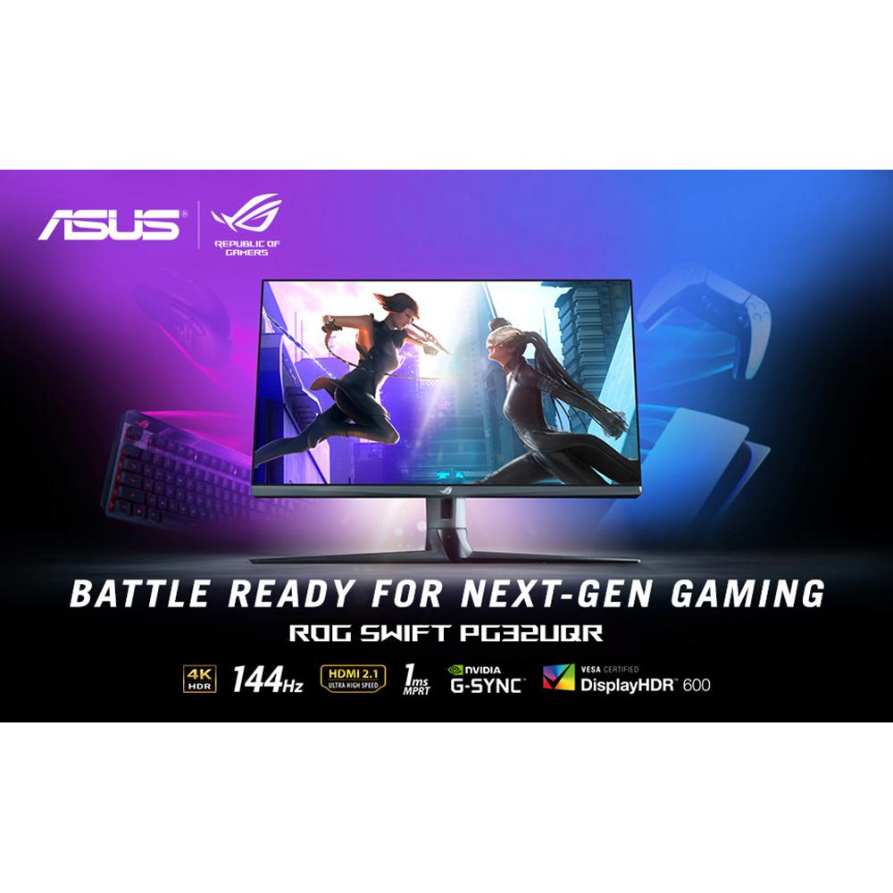 The ROG Swift PG32UQR is a 32 inch 4K UHD IPS professional gaming monitor designed for 144 Hz gaming. It features the latest HDMI 2.1 standard to support up to native 4K 120 Hz visuals on the latest consoles without subsampling; and Display Stream Compression (DSC) technology and NVIDIA G-SYNC Compatible enable supersmooth experiences on PCs. A 98% DCI P3 color gamut and DisplayHDR 600 certification complete the package; ensuring exceptional colors for incredibly immersive; lifelike gaming.