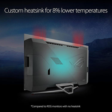 The custom heatsink found in the PG42UQ offers more surface area for heat exchange to provide more efficient cooling performance; even in long gaming stints. The lower temperature enables better OLED performance with lower likelihood of image sticking. This robust fanless system operates silently to minimize distractions.