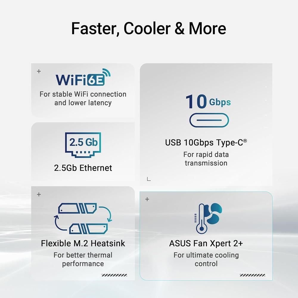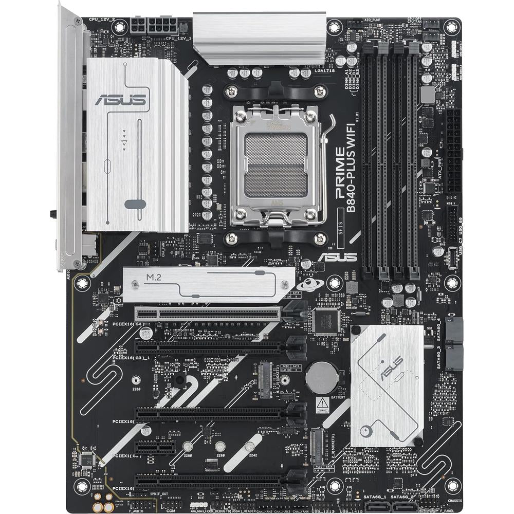 - ASUS PRIME B840-PLUS WIFI AMD AM5 B840 ATX motherboard, Advanced AI Ready, DDR5, PCIe 4.0, 3x M.2, Wi-Fi 6E, 2.5Gb LAN, DisplayPort, HDMI , USB 10Gbps Type-A & Type-C , BIOS FlashBack , Aura Sync RGB