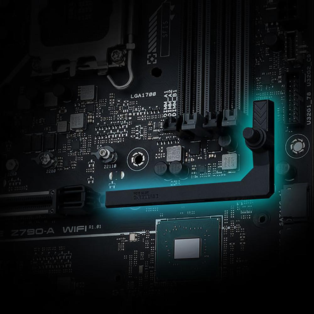 Prime Z790-A WIFI offers a total of four M.2 slots that support data-transfer speeds of up to 64 Gbps via PCIe 4.0; enabling quicker boot-up and app load times with OS or application drives.