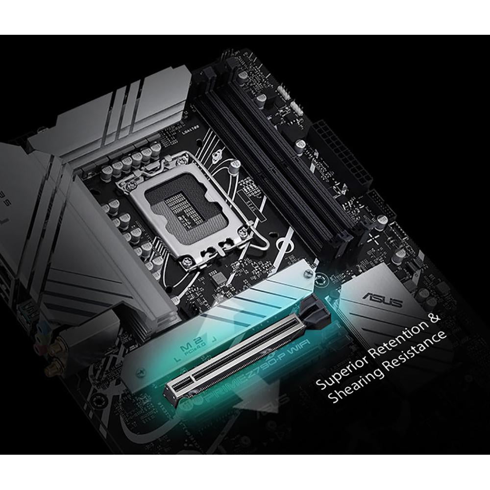 PRIME Z790-P WIFI offers a total of three M.2 slots that support data-transfer speeds of up to 64 Gbps via PCIe 4.0; enabling quicker boot-up and app load times with OS or application drives.